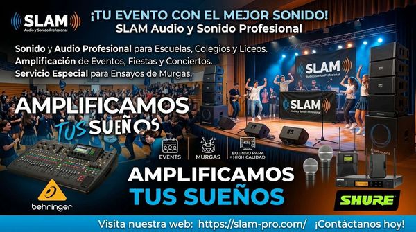 En SLAM Audio Profesional, nuestra misión es ofrecer un sonido excepcional para cada evento. Es nuestro primer objetivo especializarnos en sonido en vivo para eventos en Colegios, Liceos y Escuelas, ensayos de murgas y coros polifónicos, asegurando que cada presentación sea inolvidable.